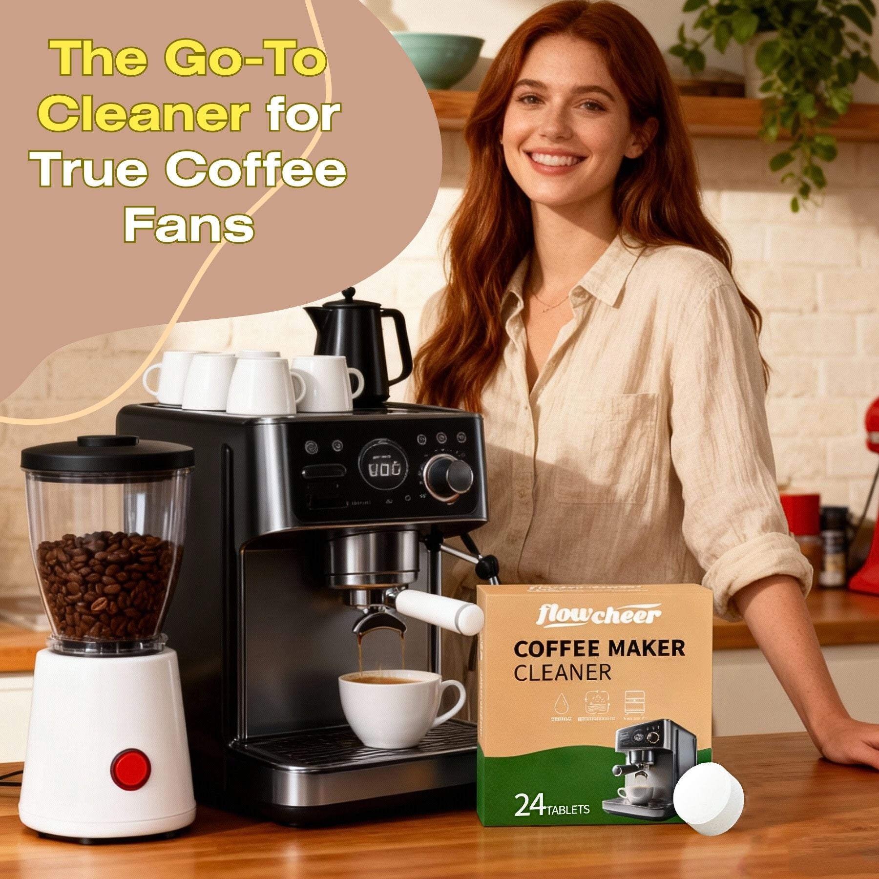 Flowcheer Coffee Machine Cleaner Descaler Tablets - 12 Count, Coffee Maker Pot Descaling & Cleaning Tabs