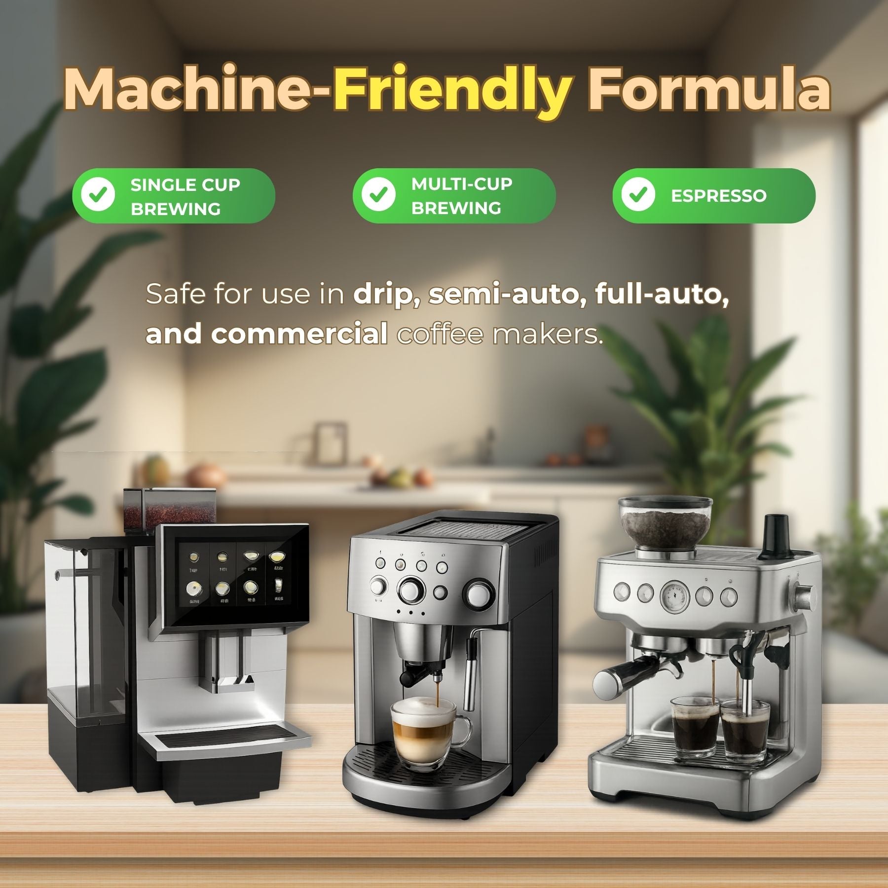 - Compatible with All Machines: Safe to use in all types of Coffee Machines, regardless of brand or model including Breville, Bambino, Keurig, Jura, Gaggia Classic, Ninja, Gaggenau, Nespresso, DeLonghi, Gaggia, Phillips Miele, Braun, SMEG OXO and more, ensuring a worry-free cleaning experience.