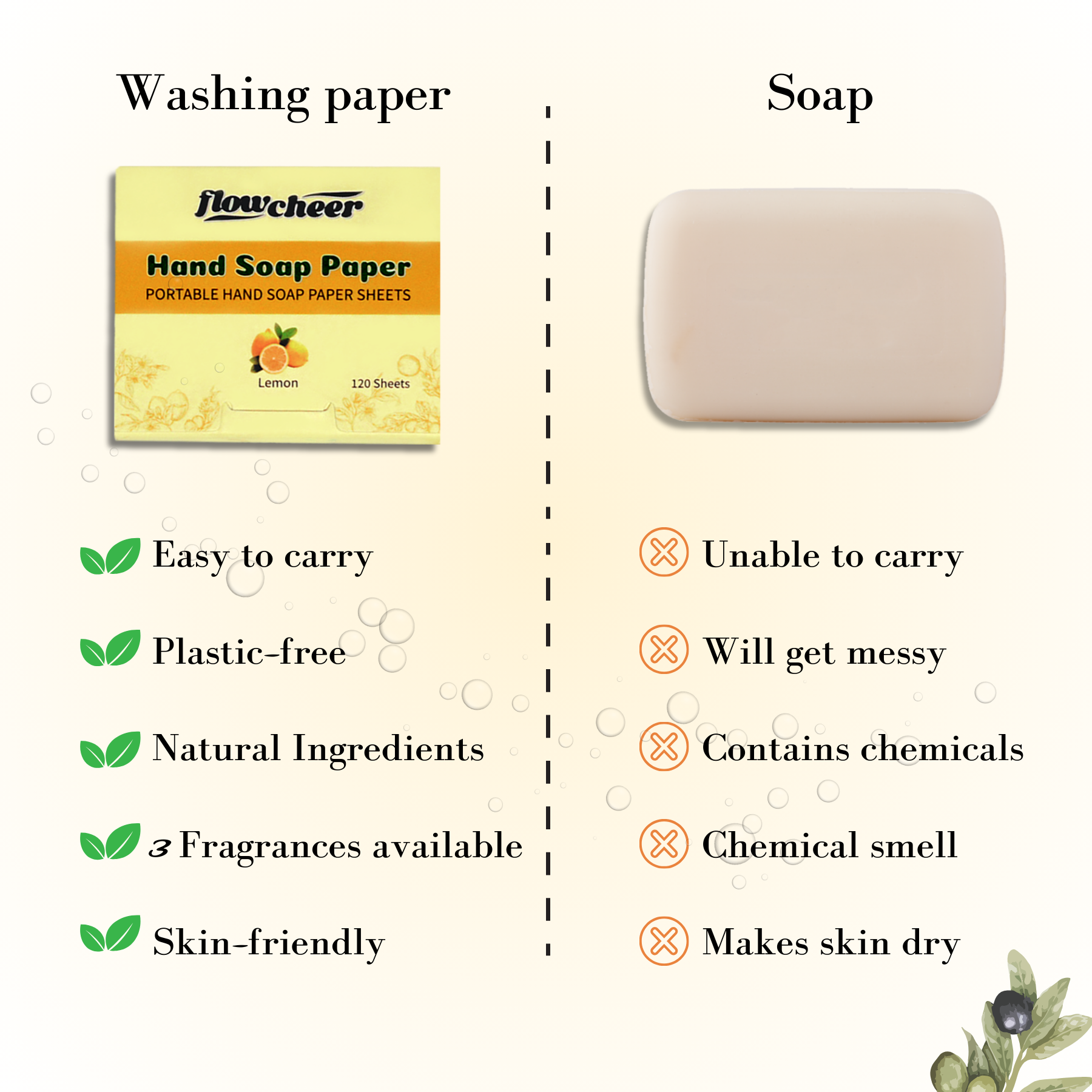 - SKIN-LOVING & EFFECTIVE: Made with plant-based extracts, Flowcheer soap sheets are safe for all skin types, including children. These residue-free sheets provide a nourishing and gentle hand-washing experience, making them a great choice for families.